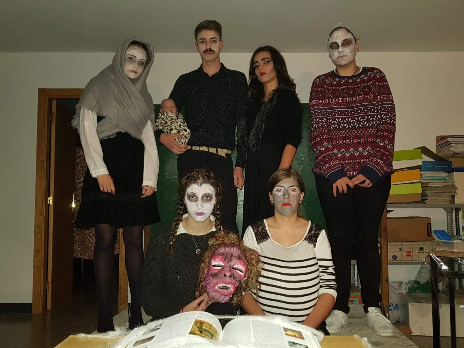 To start the day, all the pupils and teachers went to the assembly hall to watch a short play called "The Ana's Family", which incited students to spend Halloween day doing some activities.